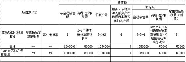 例1、某企业为一般纳税人,机构所在地为广州市天河区,纳税人以其2016年6月7日在佛山市南海区取得的不动产对外出租,2016年7月共取得租金收入111万元(含税),为了对外出租更换照明灯400个,购买照明灯取得增值税专用发票,发票上注明的销售额为20万元,税额为3.4万元。购买电器一批,取得增值税专用发票上注明的销售额为20万元,税额为3.4万元。本期均已认证通过。