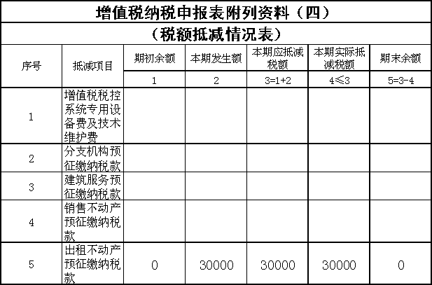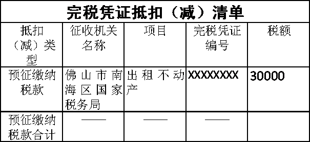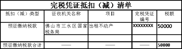2、填写《完税凭证抵扣(减)清单》“预征缴纳税款”行。