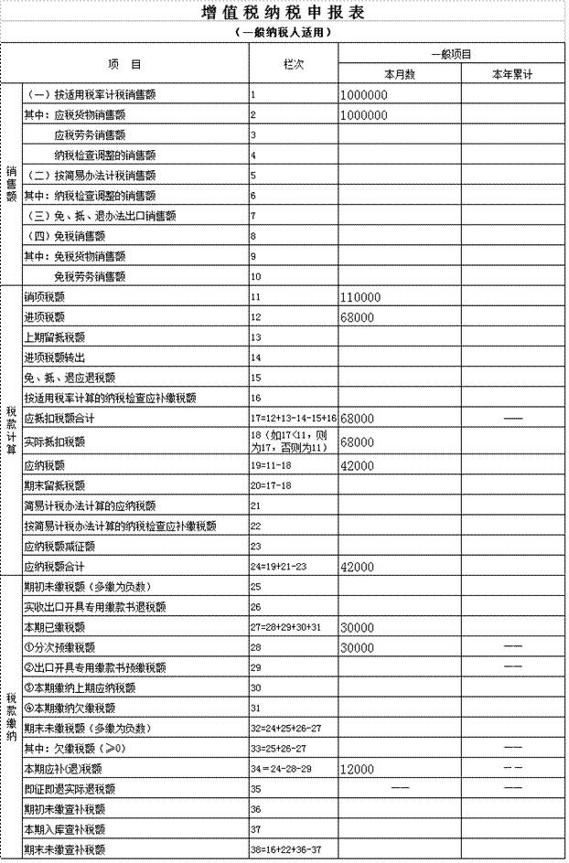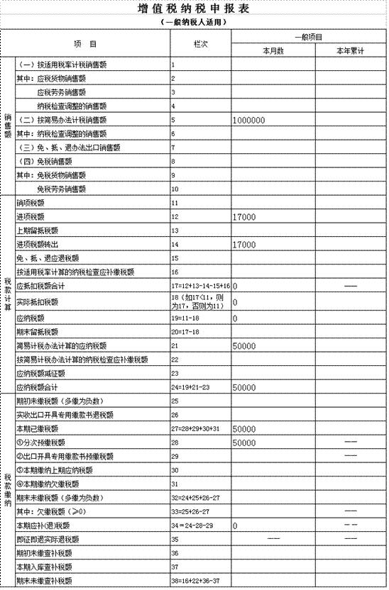 7、填写主表《增值税纳税申报表(一般纳税人适用)》。