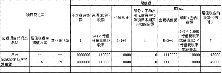 测算的增值税应纳税额=扣除后的销项税额÷《增值税纳税申报表(一般纳税人适用)》主表第11栏“销项税额”“一般项目”和“即征即退项目”“本月数”之和×《增值税纳税申报表(一般纳税人适用)》主表第19栏“应纳税额”“一般项目”和“即征即退项目”“本月数”之和=110000÷110000×42000=42000元
