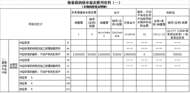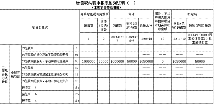 5、如该纳税人开具了增值税专用发票,则填写“增值税纳税申报表附列资料(一)”中9b行。